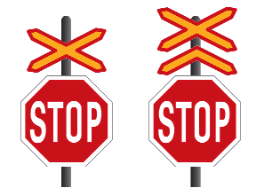 Η πρώτη από αυτές (Κ-33) είναι κίτρινη με χαραγμένες στην επιφάνειά της τρεις κόκκινες πλάγιες γραμμές και τοποθετείται 300 m πριν από την ισόπεδη διάβαση.