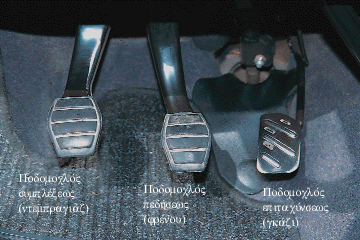 Είναι οι τρεις ποδομοχλοί που βρίσκονται κάτω από το τιμόνι και μπροστά από το κάθισμα του οδηγού, σε θέση ώστε ο χειρισμός τους να γίνεται με τα πόδια (σχ. 1.1).