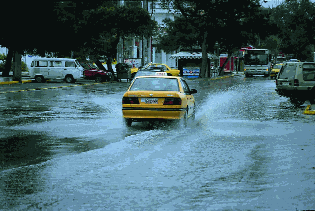 Κίνηση σε πλημμυρισμένο οδόστρωμα.